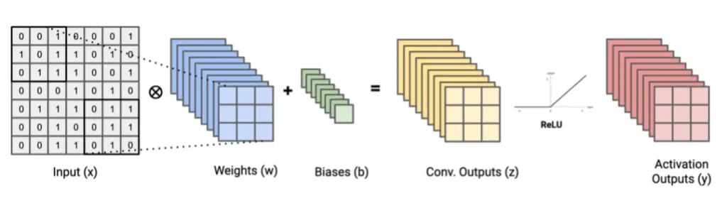 Figure 3. Tensors used in a 3x3 Conv., Bias Add, and ReLU activation function sequence of graph operators. Image by Author.