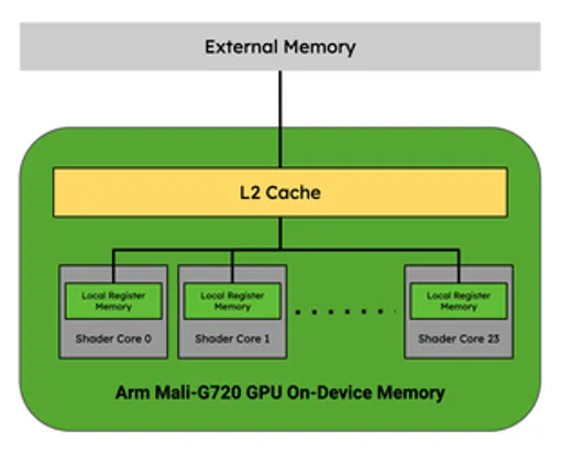 Figure 5. Arm Mali-G720 GPU Memory Hierarchy. Adapted from a diagram in this blog post